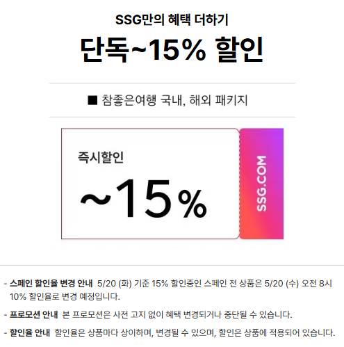 - 혜택 : 정상가 대비 최대 15% 할인, 카드 청구 할인, 항공사 마일리지 적립 (상품별 상이)
