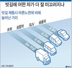 빗길 주행 속도와 제동 거리 관계
