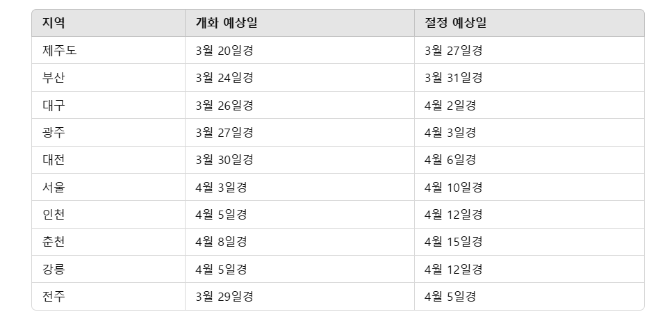 📌 2025년 벚꽃 개화 시기 예상표