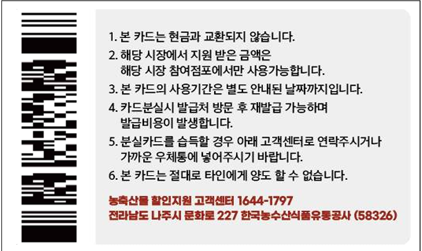 - 전용카드 발급: 시장 상인회 사무실에 방문하여 전용카드를 발급받으세요. (본인 확인 필수!)
