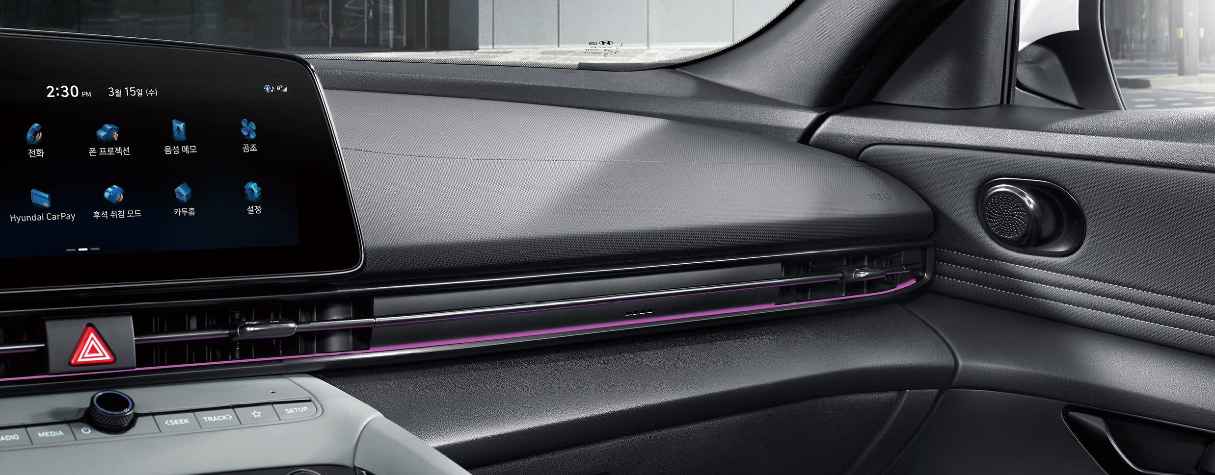 더욱 편리하고 안전한 드라이빙을 위해 2026년형 아반떼는 버튼 시동 & 스마트키, 원격 시동, 웰컴 시스템, 스마트 트렁크, 도어 포켓 라이팅(전면) 등 다양한 스마트 기능을 기본으로 제공합니다. 이제 키를 꺼낼 필요 없이 스마트하게 차량을 제어하고, 어두운 밤에도 안전하게 차량에 탑승할 수 있습니다.
